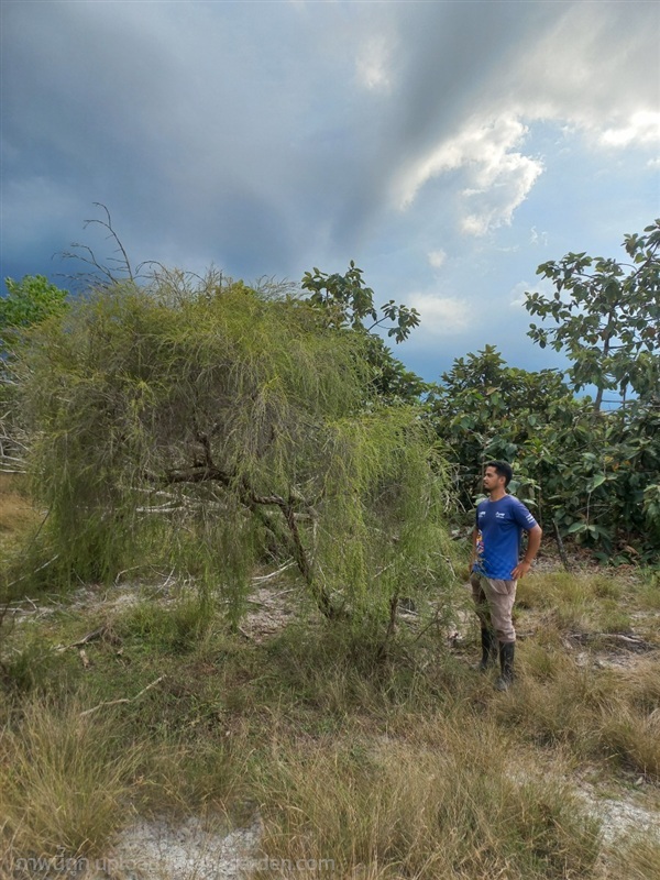 ผมเป็นนักจัดสวน ผมได้เห็นต้นสนทรายที่บ้านเกิด ผมมองเห็นว่า ถ้านำไปจัดสวนอังกฤษ สไตล์เมดิเตอร์เรเนียน คงสวนไม่เบ่า เเต่ในตลาดเองยังไม่มีนำไปขาย เเละผมก็ยังไม่เห็นนักจัดสวนคนไหนนำไปใช้จัดสวน