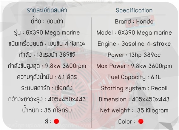 เครื่องยนต์ HONDA GX 390 วิ่งเรือ QBT