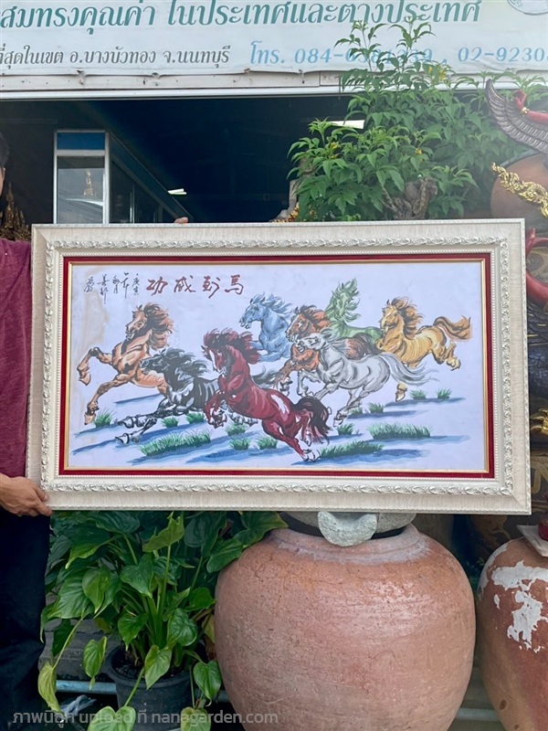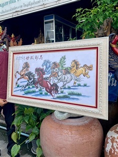 เปิดสะสม งานศิลปะแขวนผนัง งานปักบนผืนผ้า ปักผ้าด้วยมือทั้งชิ้นงาน ลวยลายแปดอาชานัย เก่าแท้ เป็นงานแฮนเมดจากเมืองจีน (ภาพมงคลม้า8ตัว)