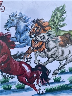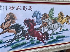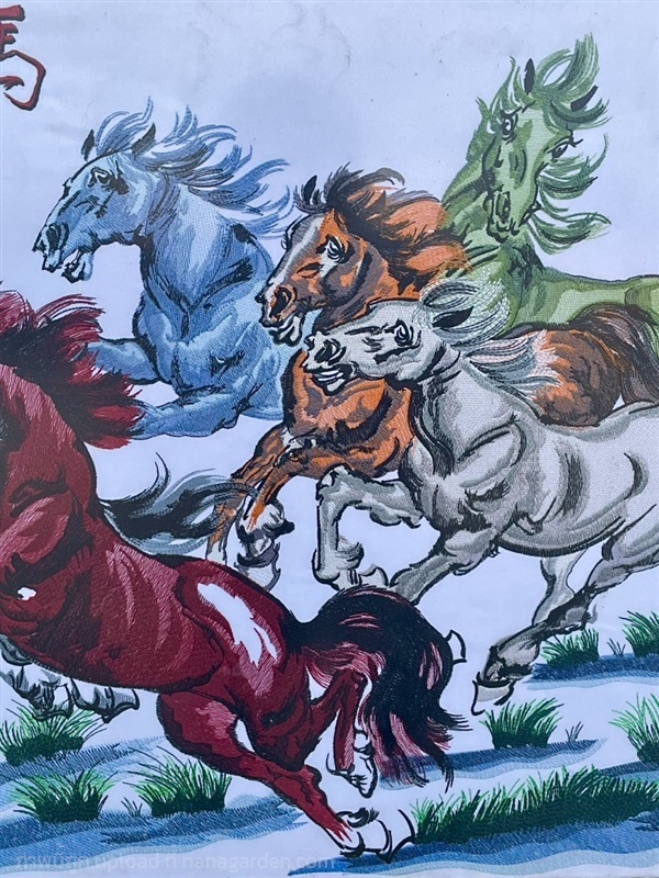 ศิลปะงานปักผ้าด้วยมือ ลายม้า8ตัว งานปักผ้าลายอาชา