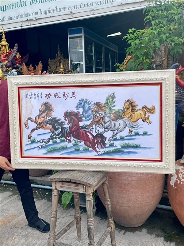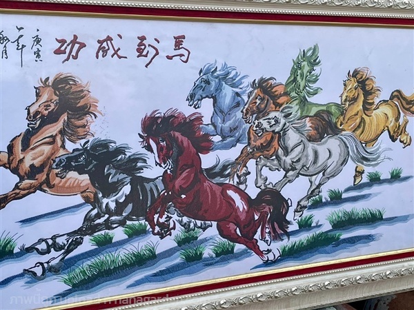 เปิดสะสม งานศิลปะแขวนผนัง งานปักบนผืนผ้า ปักผ้าด้วยมือทั้งชิ้นงาน ลวยลายแปดอาชานัย เก่าแท้ เป็นงานแฮนเมดจากเมืองจีน (ภาพมงคลม้า8ตัว)