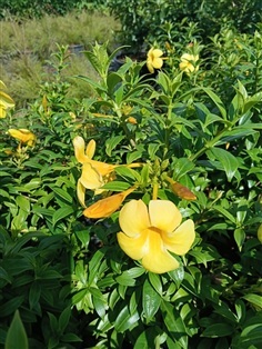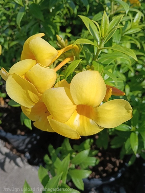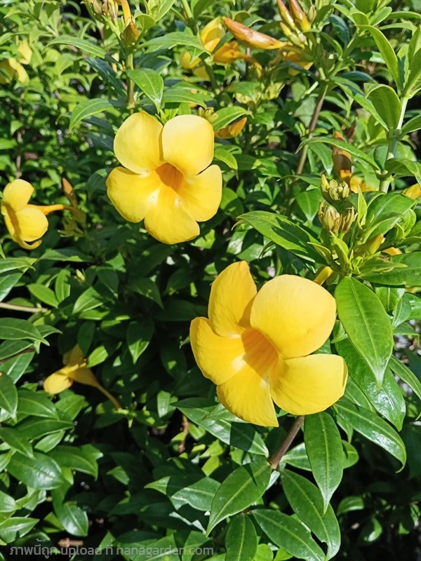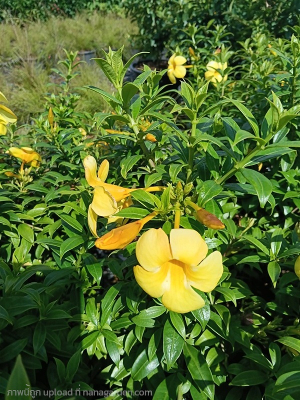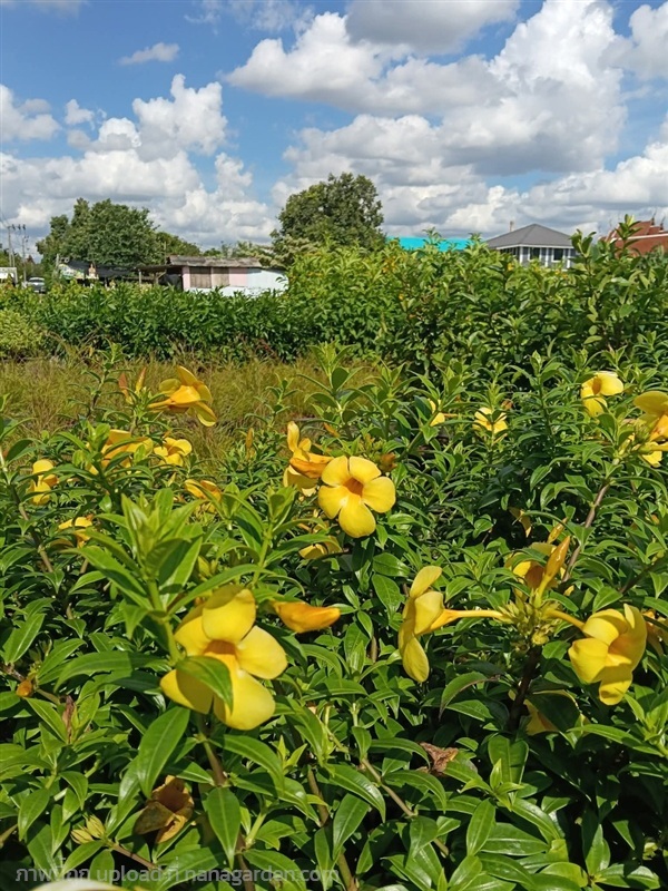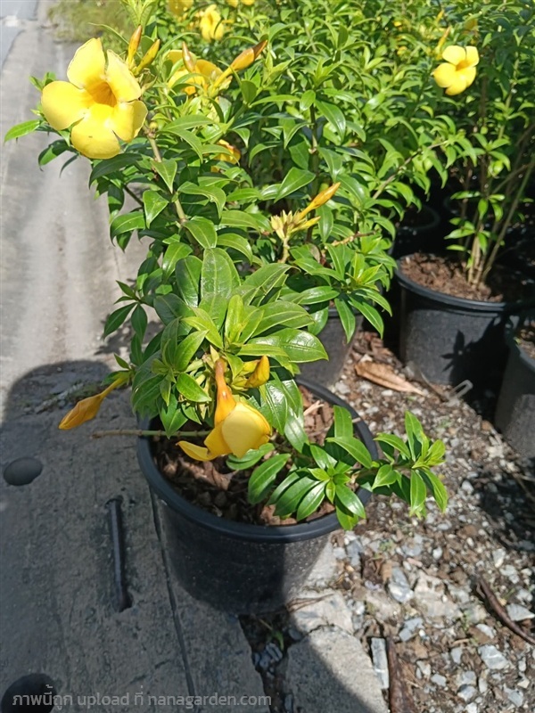 บานบุรีแคระไม้พุ่มขนาดเล็ก แตกต่างจากบานบุรีทั่วไปตรงที่ใบมีสีเงินอมเทา และออกดอกสีเหลืองตลอดปี ปลูกง่าย ทนทาน กระถาง 11 นิ้ว ต้นสวย