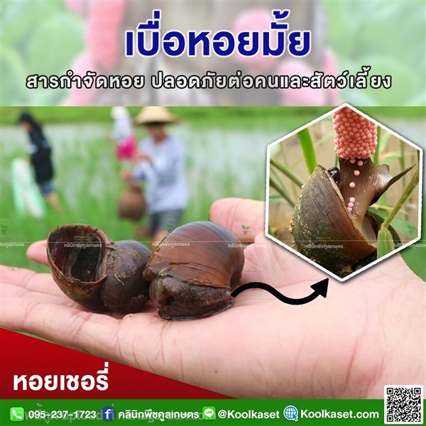 -พ่นให้ทั่วเมื่อพบการระบาดของหอยในนาข้าว