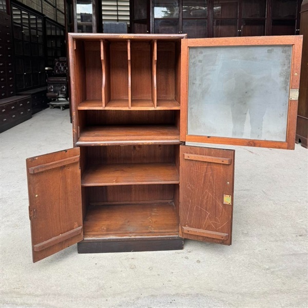 ตู้ใส่แผ่นเสียงงานเก่า ทำจากไม้สักทั้งหลัง ดีไซน์เรียบ แต่ใช้สอยครบ ช่องด้านในแบ่งเป็น 3 ช่องสำหรับใส่แผ่นเสียง สามารถถอดเข้า-ออกได้ตามต้องการ ด้านล่างเป็นชั้นวางของ 2 ชั้น ใช้เก็บอุปกรณ์หรือโชว์ของสะสม กระจกเดิมทั้งบาน งานเก่าสภาพดีพร้อมใช้งาน เหมาะสำหรับคนรักแผ่นเสียงหรือใช้งานเป็นตู้โชว์วินเทจ