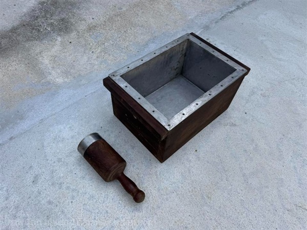 ลังน้ำแข็งพร้อมตัวทุบน้ำแข็ง งานโบราณที่ใช้ในร้านขายของชำและร้านขายน้ำแข็งสมัยก่อน ผลิตจากไม้เนื้อแข็ง ด้านในกรุอะลูมิเนียม เหมาะสำหรับนักสะสมหรือใช้ตก แต่งร้านในสไตล์วินเทจ