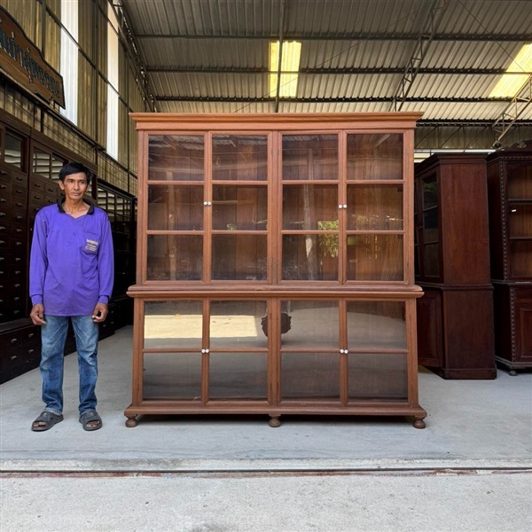 ตู้หัวบัวใหญ่สีไม้สัก 4 บานเปิดรุ่นหายาก งานเก่าอายุมากกว่า 50 ปี ทำจากไม้สักทั้งหลัง สามารถแยกออกเป็นสองส่วนบนล่างเพื่อความสะดวกในการเคลื่อนย้าย โครงสร้างแข็งแรง เหมาะสำหรับใช้เก็บของหรือจัดโชว์ในบ้านสไตล์วินเทจและคลาสสิก