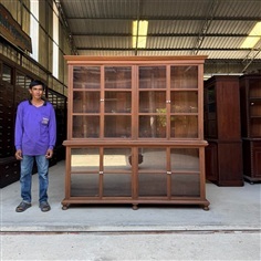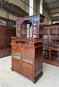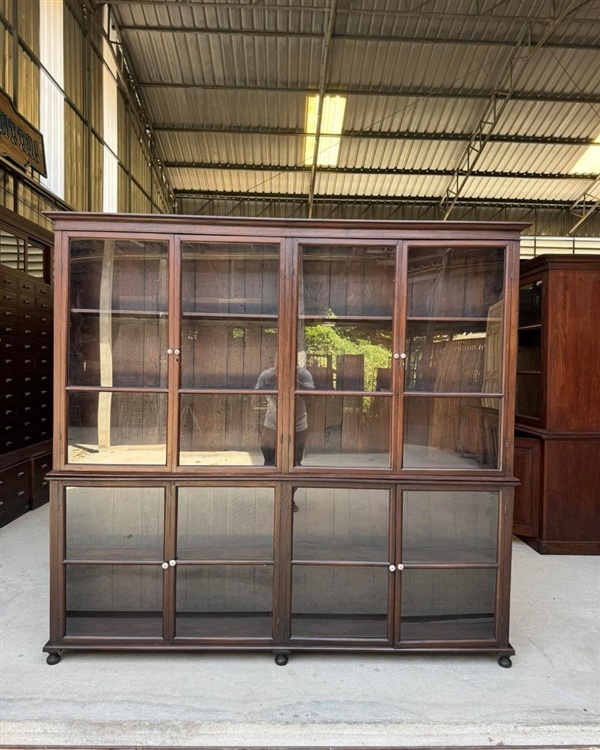 ตู้หัวบัว 4 บานเปิด ใบเล็กงานเก่าอายุมากกว่า 50 ปี ทำจากไม้สักทั้งหลัง โครงสร้างแข็งแรง บานเปิดสี่บานแบ่งเป็นส่วนบนและส่วนล่าง สามารถแยกออกเป็นสองตอนบนล่างได้ ใช้งานสะดวกทั้งสำหรับเก็บของและจัดโชว์ เหมาะวางในบ้านสไตล์วินเทจหรือคลาสสิก