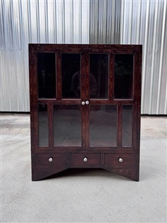 คันฉ่องขากลึงแบบนั่งพื้นงานไม้สักทั้งหลัง อายุเกิน 70 ปี โครงสร้างแข็งแรง ลักษณะเป็นโต๊ะแบบนั่งพื้น ด้านล่างมีลิ้นชัก 2 ช่อง ด้านบนมีลิ้นชักเล็กอีก 2 ช่อง เพิ่มพื้นที่จัดเก็บของกระจุกกระจิก ด้านบนตก แต่งด้วยกระจังลายนกคู่แกะสลักอย่างประณีต ให้ความรู้สึกหรูหราแบบโบราณ เหมาะสำหรับใช้ แต่งบ้านสไตล์วินเทจหรือคหบดีไทย