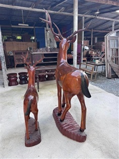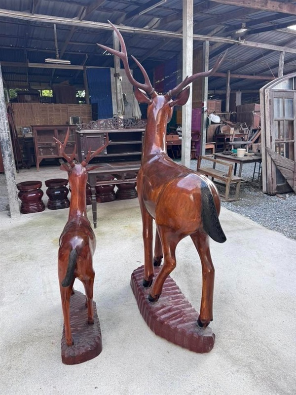 งานแกะไม้โบราณจากไม้จามจุรี แกะเป็นรูปกวางแม่ลูก สีเดิมรักษาสภาพดี มีร่องรอยตามอายุงานเกิน 50 ปี รายละเอียดการแกะลึกชัด เหมาะสำหรับตั้งโชว์เป็นของสะสม ตก แต่งบ้าน ร้าน หรือเป็นพร็อพถ่ายภาพ งานชิ้นใหญ่สภาพแข็งแรง น้ำหนักและสเกลโดดเด่น กวางตัวเล็กมีตำหนิกลางตัวเข้าไม้มาบริเวณตาไม้