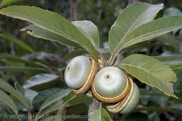 ไม้ต้นไม่ผลัดใบ ขนาดกลาง สูง 4–25 ม. เรือนยอดเป็นพุ่มกลมทึบ เปลือกนอกสีน้ำตาลเทา เปลือกในสีน้ำตาล มีรอยกดที่กระพี้อย่างเด่นชัดกิ่งอ่อนสีน้ำตาลอมเทา มีช่องอากาศเด่นชัด มีขนปกคลุมประปราย ใบเดี่ยว เรียงเวียน รูปไข่กลับแกมรูปขอบขนาน หรือรูปรี กว้าง 2–6 ซม. ยาว 5–18 ซม. เนื้อใบค่อนข้างหนาคล้ายแผ่นหนัง ด้านบนสีเขียว ด้านล่างสีเขียวนวล มีขนประปรายตามเส้นแขนงใบ เส้นแขนงใบข้างละ 8–12 เส้น ดอกแยกเพศต่างต้น ดอกเพศผู้แบบช่อหางกระรอก ห้อยลง เป็นช่อเดี่ยวหรือเป็นกระจุกละ 2–3 ช่อ ออกที่ปลายกิ่ง ยาว 1–7 ซม. กลีบรวม 6–8 กลีบ รูปไข่กลับ เกสรเพศผู้ 8 เกสร ก้านชูอับเรณูยาวประมาณ 1 มม. เกลี้ยง ดอกเพศเมียแบบช่อเชิงลดหรือช่อกระจะสั้น ๆ ออกที่ปลายกิ่ง รังไข่อยู่เหนือวงกลีบ ก้านยอดเกสรเพศเมีย 4–5 ก้าน ยอดเกสรเพศเมียเป็นตุ่มกลม ผลเปลือกแข็ง แห้งไม่แตก ผลอ่อน กาบหุ้มผลรูปถ้วยหุ้มผลประมาณครึ่งหนึ่ง ผลแก่ขอบถ้วยผลแผ่ขยายบานเป็นคลื่นคล้ายหมวก ผิวหุ้มถ้วยผลมีเกล็ดเรียงเป็นวง 8–12 วง มีขนคล้ายไหมสีน้ำตาลปกคลุมหนาแน่น เมล็ดเปลือกแข็ง 1 เมล็ด รูปทรงไข่ กว้าง 1.8–3 ซม. ยาว 2–3 ซม. มีขนสีสนิมประปรายใกล้ส่วนปลาย