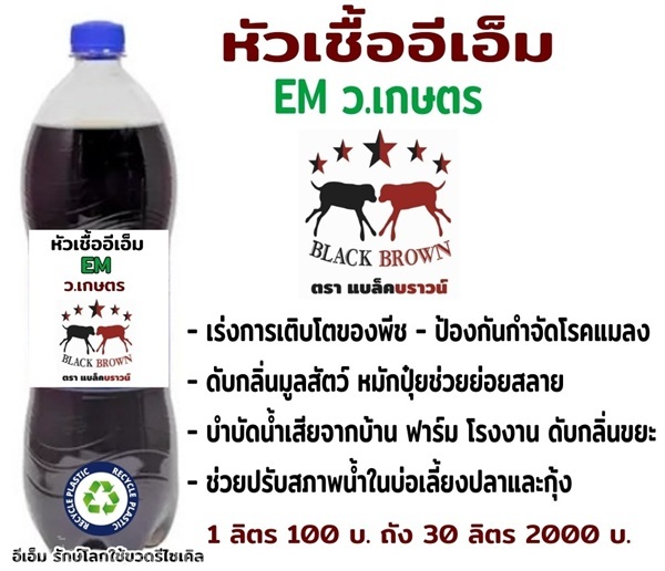 - ผสมน้ำให้กินทุกวัน สัตว์สุขภาพดี มีภูมิต้านทาน EM ผสมน้ำ 10 ซีซี ต่อน้ำ 10-50 ลิตร