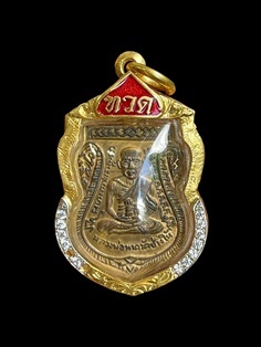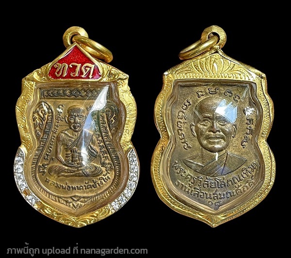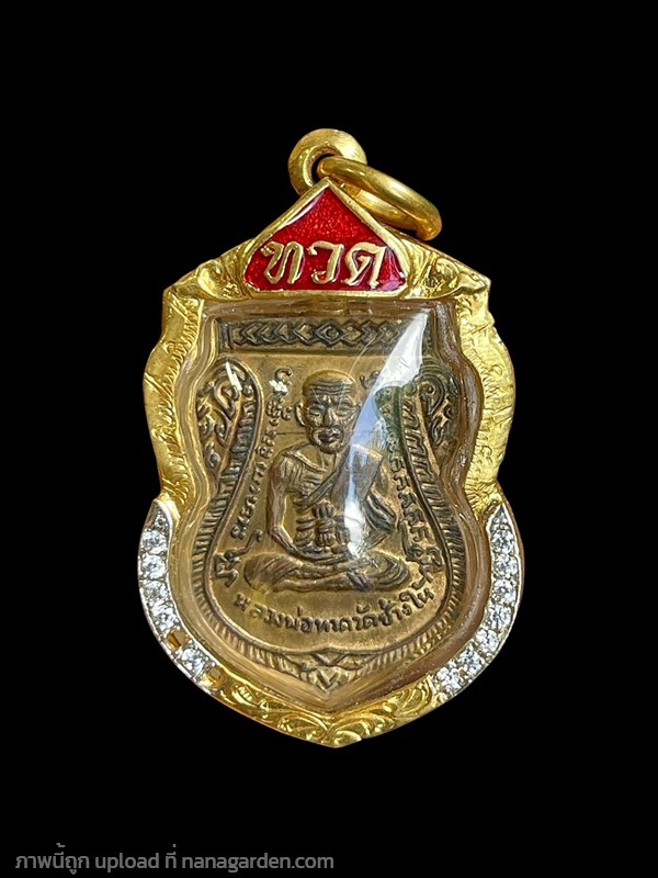 เปิดบูชา เหรียญเลื่อนสมณศักดิ์ หลวงปู่ทวด บล็อกผ่าปาก ปี08 เนื้อทองแดง กะไหล่ทอง พร้อมกรอบทองฝังเพชร สวยสมบูรณ์ เส้นสายคมชัด