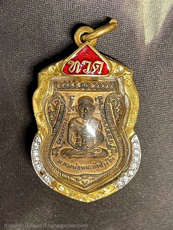 เปิดบูชา เหรียญเลื่อนสมณศักดิ์ หลวงปู่ทวด บล็อกผ่าปาก ปี08 เนื้อทองแดง กะไหล่ทอง พร้อมกรอบทองฝังเพชร สวยสมบูรณ์ เส้นสายคมชัด