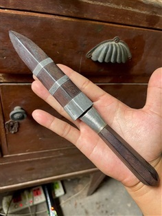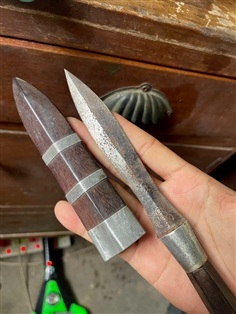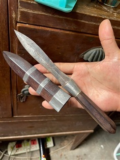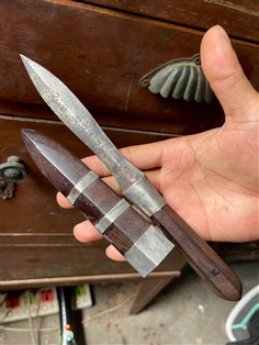 เปิดบูชา มีดหมอหลวงพ่อรุ่ง วัดหนองสีนวล จ.นครสวรรค์ ด้ามไม้พญางิ้วดำใบเหล็กลงยันต์ ปลอกติดแผ่นเงินเก่า สภาพเก่าสวยสมบูรณ์ ยุคต้น งานทำมือแต่ละด้ามไม่ซ้ำใคร ขนาดยาว 9.5นิ้ว ช่วงปีจัดสร้าง พ.ศ. 2480