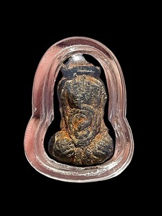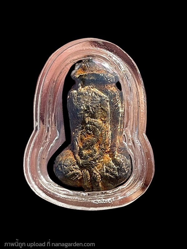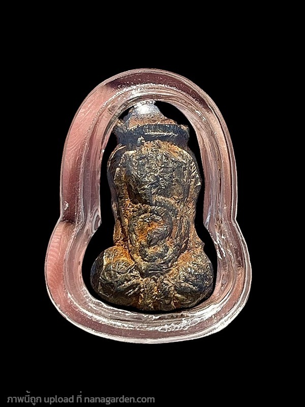 หนึ่งในพระเบญจภาคี เนื้อโลหะ จัดสร้างช่วงปี พ.ศ.2420-2436 อายุกว่า130ปี ปรากฎผลึกเส้นเสี้ยนเป็นเกล็ดคมชัดทั้งองค์ ขึ้นสนิมสีแดง (รุ้งแดง) สภาพเก่าธรรมชาติ สวยสมบูรณ์ เลี่ยมกรอบกันน้ำ