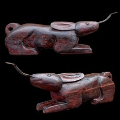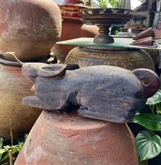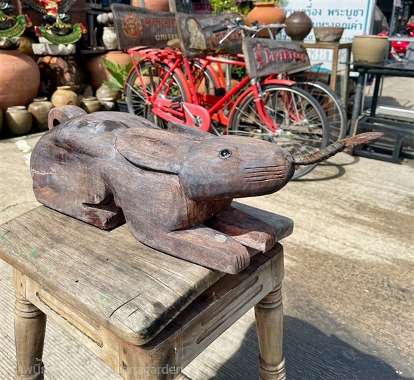 กระต่ายขูดมะพร้าว แกะสลัก สีโอ้ค กระต่ายไม้แกะ