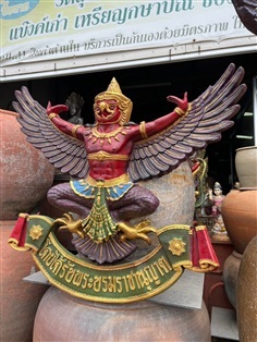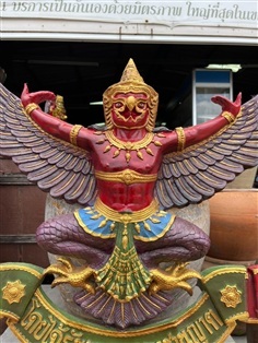 พญาครุฑ คือ องค์เทพกึ่งมนุษย์ มีลักษณะครึ่งคนครึ่งอินทรี เป็นพญาแห่งนกทั้งมวล และเป็นพาหนะของพระวิษณุ (พระนารายณ์) ทรงอิทธิฤทธิ์ พละกำลังมหาศาล ได้รับความเคารพนับถือในฐานะสัญลักษณ์แห่งอำนาจ ความเจริญรุ่งเรือง และการปกป้องคุ้มครอง