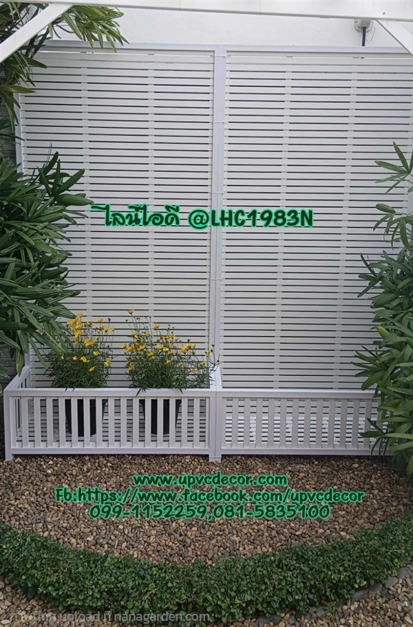 ผลิตและจำหน่าย  ระแนงกระถางบังตาแทงค์น้ำ ระแนงตกแต่งบ้าน ระแนงตกแต่งสถานที่ สั่งทำตามขนาดก็ได้ค่ะ ใช้งานได้ยาวนาน ตั้งวางได้เลย รั้วบังตา ระแนงกระถาง วัสดุupvc ทนน้ำ แดด ปลวกไม่กิน สีไม่ลอก ใช้ได้ทั้งในร่มและกลางแจ้ง  ราคาตามขนาด สอบถามเพิ่มเติมได้ที่ ไลน์ไอดี @LHC1983N
