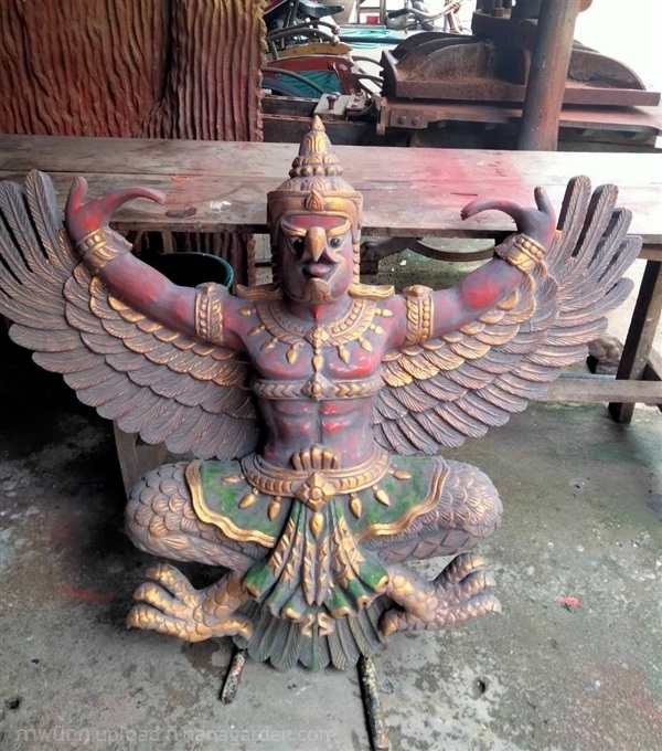 พญาครุฑไม้สัก ขนาด120ซม ครุฑไม้แกะ