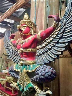 - ผ่านพิธีเบิกเนตรแล้ว ครุฑไม้เก่าโรงสี