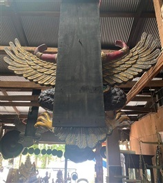 - ผ่านพิธีเบิกเนตรแล้ว ครุฑไม้เก่าโรงสี