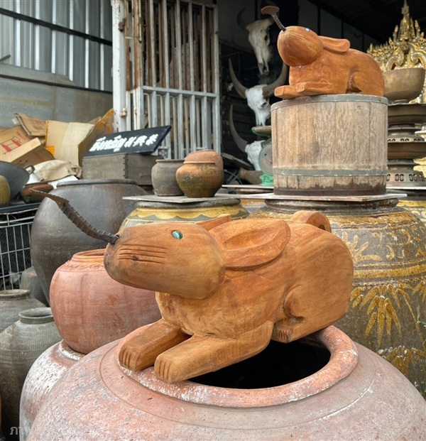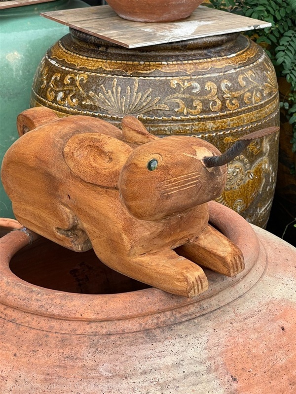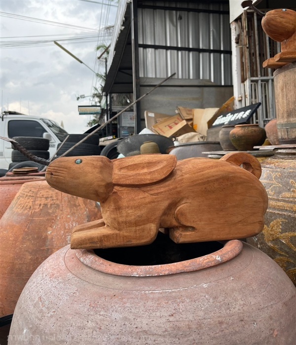กระต่ายขูดมะพร้าว กระต่ายไม้แกะ แบบนั่งขูด