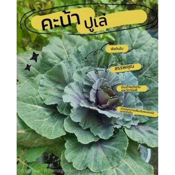 " ปูเล่ " ผักกะหล่ำที่หน้าตาคล้ายดอกไม้ รสชาตดี ไม่เหฒ็นเขียว หวานกรอบ อร่อย ไม่เหนียว ปลูกง่าย ตายยาก ใส่ในภาชนะต่างๆ ถัง กาลามัง กระถาง กระป๋อง ได้ทั้งนั้น ให้วิตามิน แร่ธาตุต่อร่างกาย ใบมีเบต้า-แคโรทีน สารอาหารที่ร่างกายจะเปลี่ยนให้เป็นวิตามินเอ ใช้บำรุงดวงตา และเสริมภูมิต้านทานร่างกายช่วยป้องกันมะเร็งและโรคหัวใจขาดเลือด