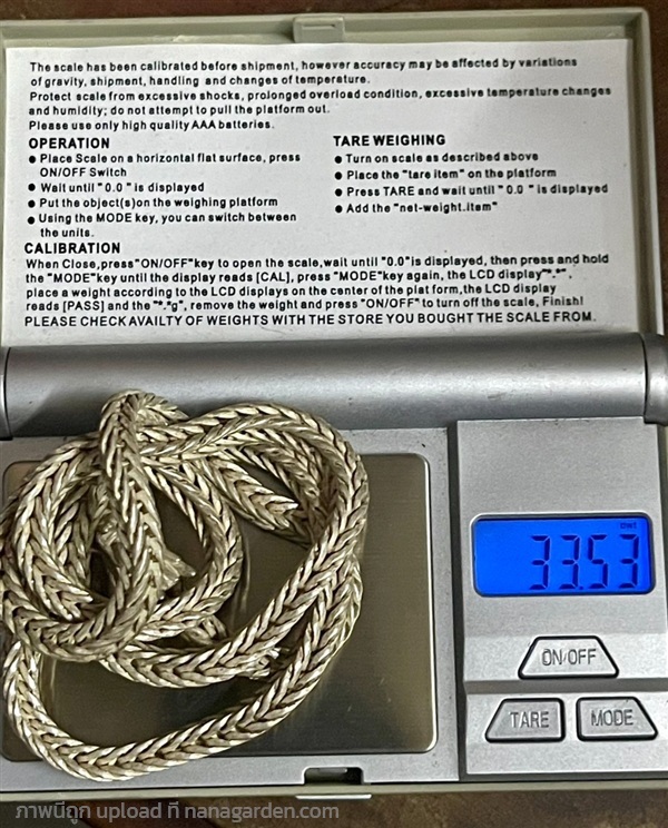 น้ำหนักราว 34 กรัม. เส้นใหญ่