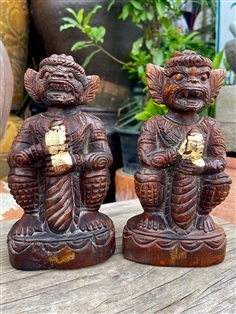 หนุมานจับหลัก ไม้สักทองแกะสลัก