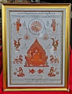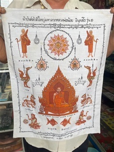 ผ้ายันต์เจ้าสัวใหญ่มหาลาภหลวงพ่อน้อย อินุทสโร รุ่น1 วัดธรรมศาลา อ.เมือง จ.นครปฐม กว้าง19นิ้ว&สูง25นิ้ว