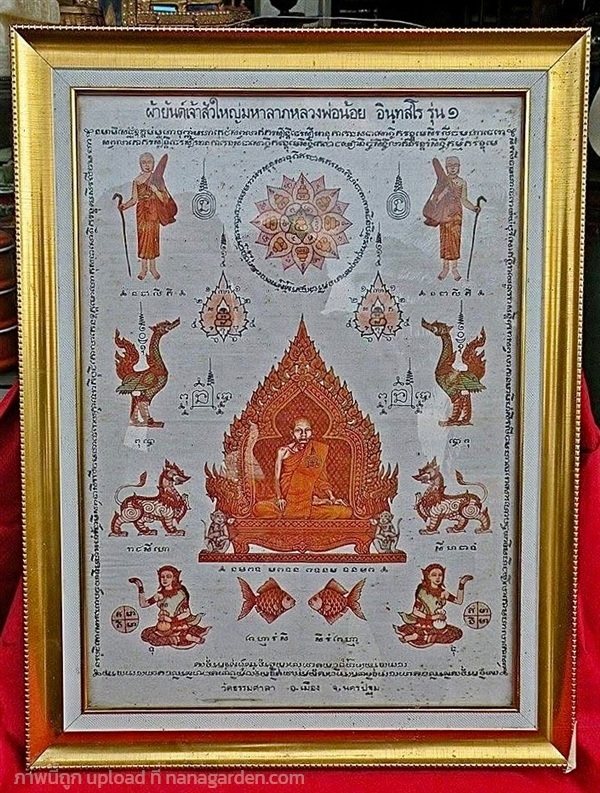 เป็นผ้ายันต์ยุคต้นของหลวงพ่อน้อย ที่ท่านได้จัดสร้างขณะยังมีชีวิต (พื้นผ้าสีขาวขนาดใหญ่ ประทับหมึกพิมพ์สี..สวยสดงดงามรายละเอียดชัดเจนคมชัดลึกดูเข้มขลัง)
