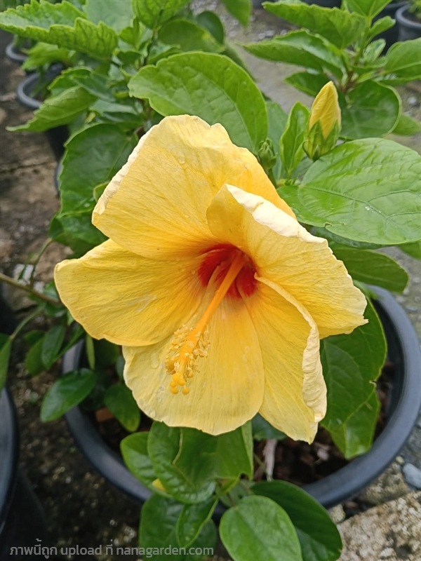 ชบาจัมโบ้ดอกเหลือง กระถาง 11 นิ้ว ต้นสวยและแข็งแรง (กทม)
