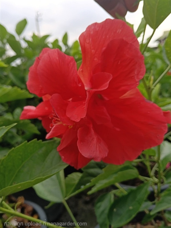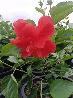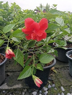 ชบาดอกซ้อนสีแดง กระถาง 11 นิ้ว ต้นสวย (กทม)