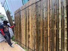 แผงรั้วไม้ไผ่เต็มลำแช่น้ำยากันมอดู