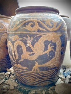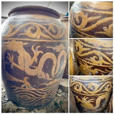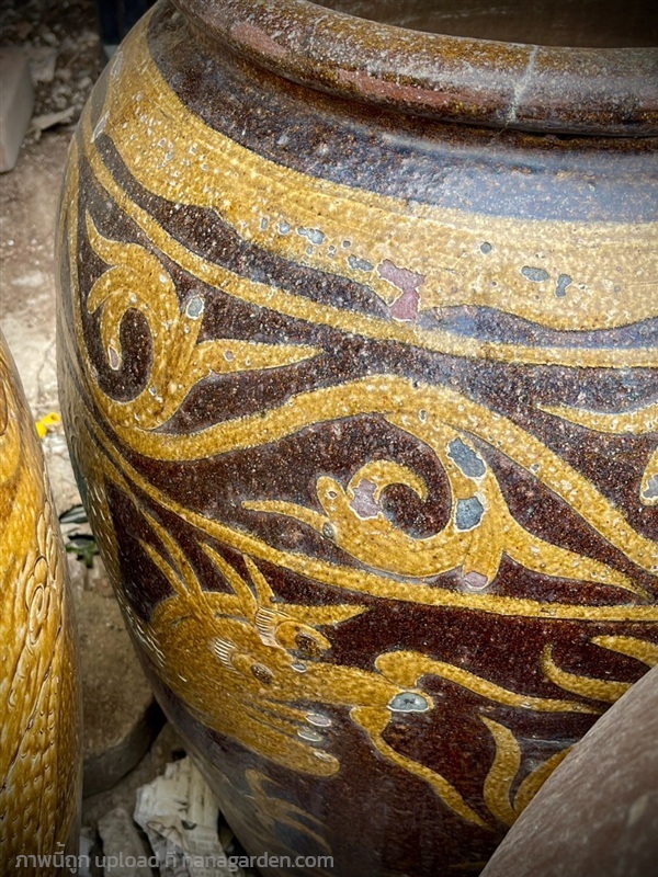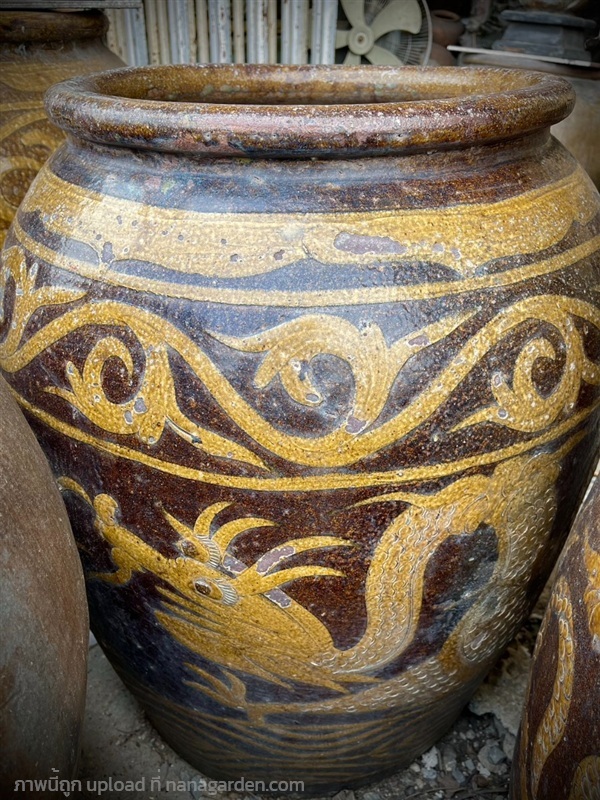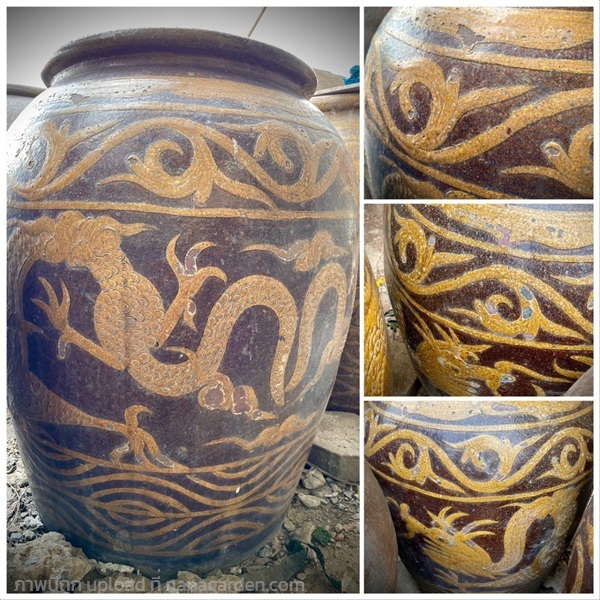 โอ่งไหหลำ ลายมังกร โอ่งดินเผาน้ำเคลือบโบราณ