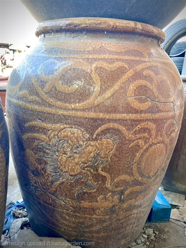 โอ่งไหหลำ น้ำเคลือบ ลายมังกรสี่เล็บ ลายมงคลนิยมสุด สภาพสวย เหมาะสำหรับอนุรักษ์สะสม ตกแต่งบ้าน จัดสวน ประดับบารมี เสริมฮวงจุ้ย สร้างบรรยากาศ