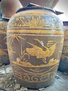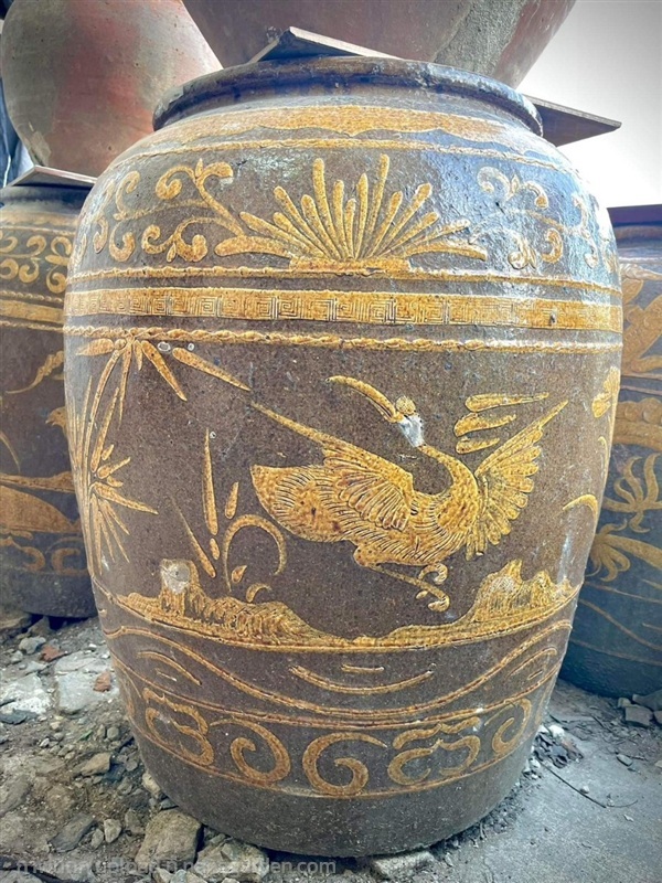 โอ่งเซี่ยงไฮ้ ลายนกกระยาง โอ่งจีนโบราณ โอ่งดินเผา