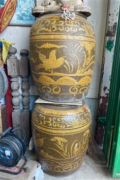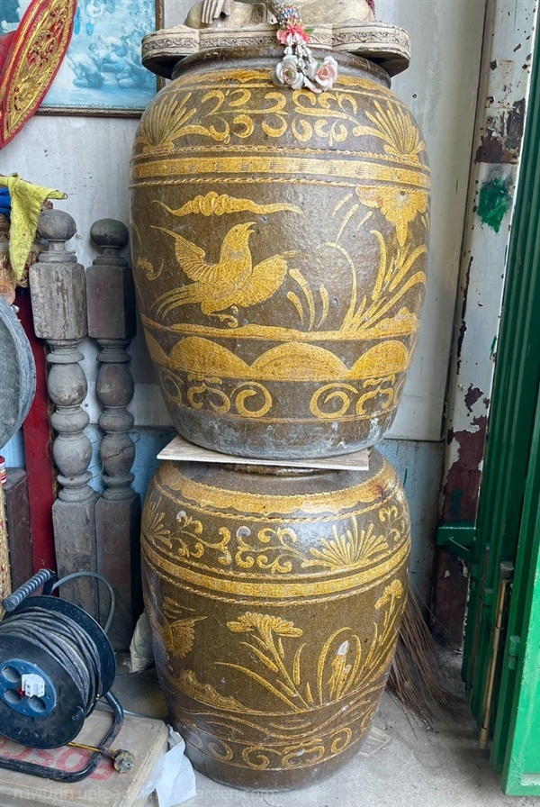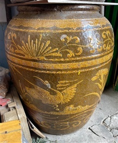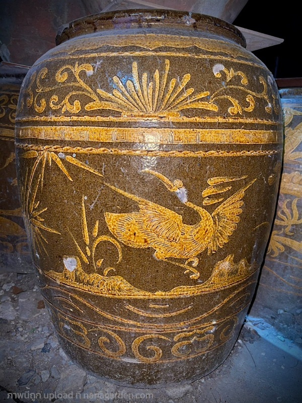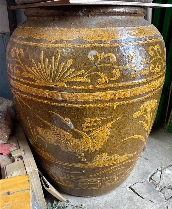 เปิดสะสม โอ่งเซี่ยงไฮ้โบราณ ลายนกกระยาง โอ่งจีนโบราณแท้ อายุหลักร้อยปี ผลิตช่วงสมัย รัชกาลที่ 4-5 ผิวสีเหลือง-ดำมันปู โอ่งโบราณ ศิลปะมณฑลเซี่ยงไฮ้ ลงน้ำมันมะกอก สีน้ำเคลือบเก่าธรรมชาติ ขนาดไซต์ใหญ่มาตรฐาน กว้างสูง 60x75ซม. ปากกว้าง35ซม.