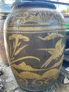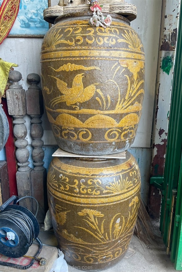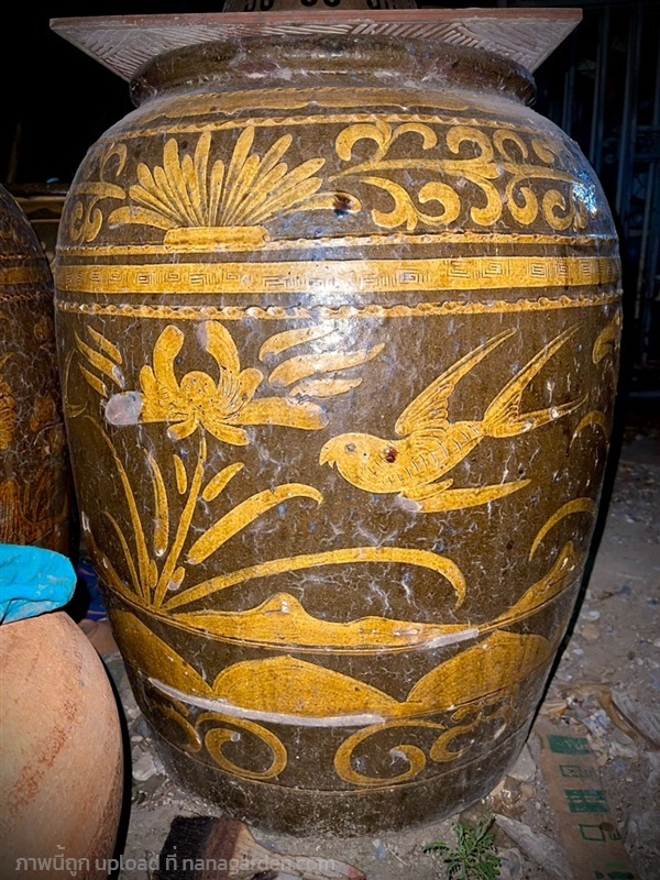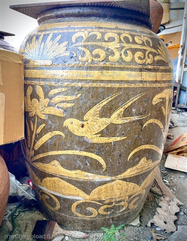 เปิดสะสม โอ่งเซี่ยงไฮ้โบราณ ลายนกหงส์หยก โอ่งจีนโบราณแท้ อายุหลักร้อยปี ผลิตช่วงสมัย รัชกาลที่ 4-5 ผิวสีเหลือง-ดำมันปู โอ่งโบราณ ศิลปะมณฑลเซี่ยงไฮ้ ลงน้ำมันมะกอก สีน้ำเคลือบเก่าธรรมชาติ ขนาดไซต์ใหญ่มาตรฐาน กว้างสูง 60x75ซม. ปากกว้าง35ซม.