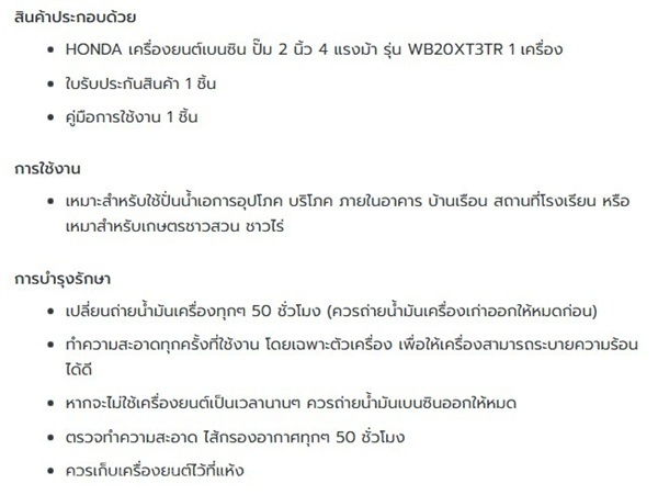 เครื่องยนต์(ปั๊มน้ำ) HONDA WB-20(TR)