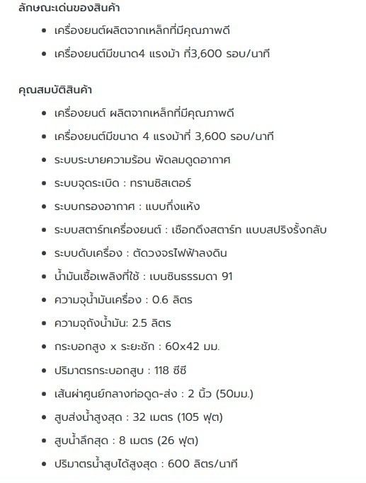 ปริมาตรน้ำสูบได้สูงสุด : 600 ลิตร/นาที