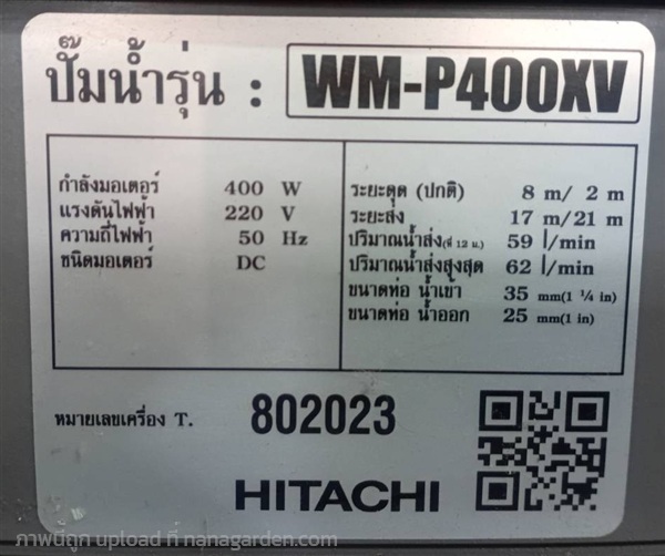 ปั๊ม HITACHI ชนิดอินเวอร์เตอร์ ขนาด 400 วัตต์