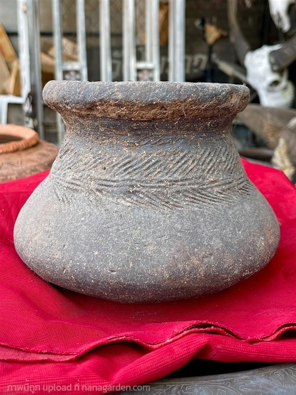 ภาชนะดินเผาโบราณ ศิลปะบ้านเชียง จ.อุทัยธานี ลักษณะก้นกลม ลายเชือกทาบ สีดำ (ยุคต้น) สภาพสวยสมบูรณ์ เป็นงานขุดค้นพบ เก่าเก็บสะสม มรดกวัฒนธรรมของไทยโบราณ