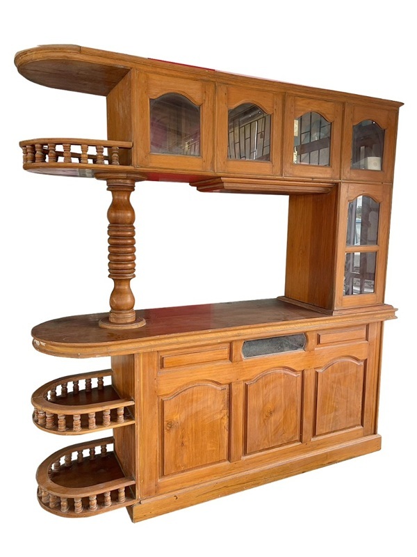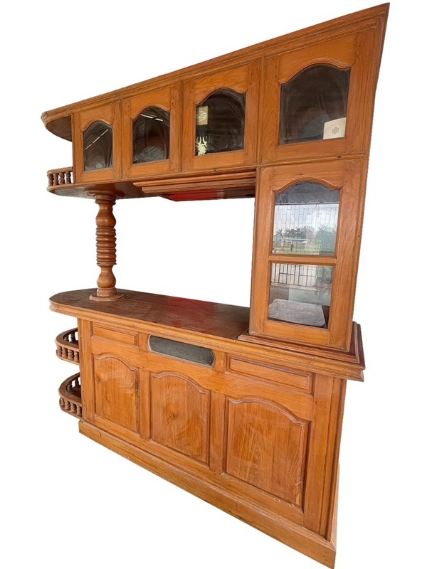 ตู้บาร์ไม้สักทอง สภาพสวยสมบูรณ์ ใช้งานน้อย ไม้สักทองทั้งหลัง ใบใหญ่ สำหรับตั้งโชว์บริการเครื่องดื่มในร้านอาหาร ตู้เคาน์เตอร์บาร์ไม้สัก แท้100% ไม้สักทองคุณภาพ เกรดดีเยี่ยม ออฟชั่นใช้งานหลายช่อง สภาพแข็งแรง อายุใช้งานคงทนและยาวนาน