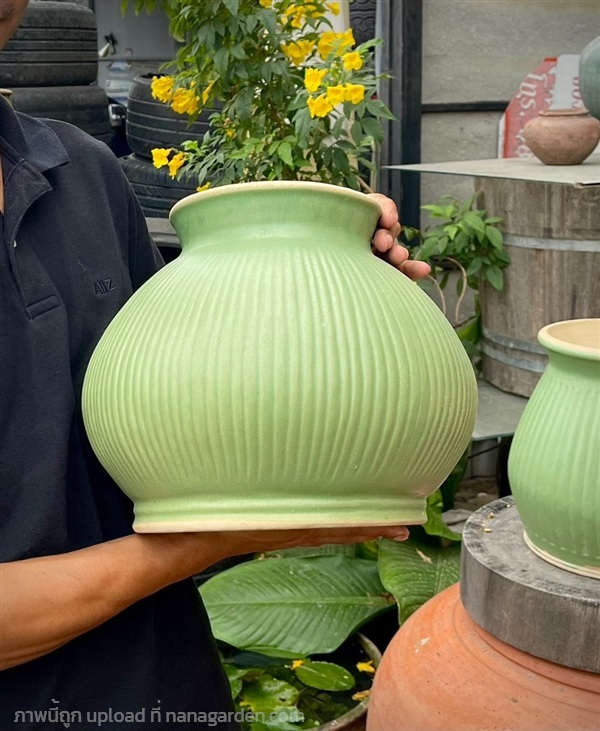 โถพลูเขียวไข่กา ลายมะเฟือง