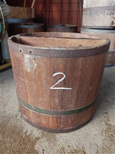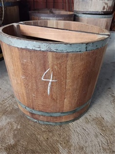 ถังไม้ตวงข้าว เป็นภาชนะทรงกระบอก ก้นทึบ ปากกลวง ทำด้วยไม้สัก มีแผ่นโลหะรัดที่ก้นถัง กลางถัง และขอบปากเพื่อความคงทน สำหรับใช้เป็นเครื่องตวงข้าวสาร ข้าวเปลือก และเมล็ดพืชผลต่าง ๆ มีทั้งขนาดความจุ 5-10-20-40 ทะนาน หรือ ลิตร มีไม้คานขวางกลางปากถังเป็นที่จับ (ตัวผู้) อีกแบบจะมีที่จับอยู่ด้านข้าง (ตัวเมีย) การตวงต้องเทเมล็ดข้าวเปลือก ข้าวสาร หรือเมล็ดพืชอื่น ๆ ลงไปจนพูนถังแล้วใช้ไม้ปาดให้เสมอขอบปากถัง สมัยก่อนจะใช้ตวงข้าวเปลือก 100 ถัง เท่ากับ 1 เกวียน 50 ถัง เรียก 1 บั้น