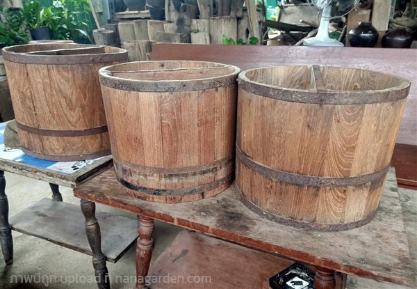 ถังไม้ตวงข้าวสาร ขนาด20ลิตร ตัวผู้ ถังตวงข้าวโบราณ