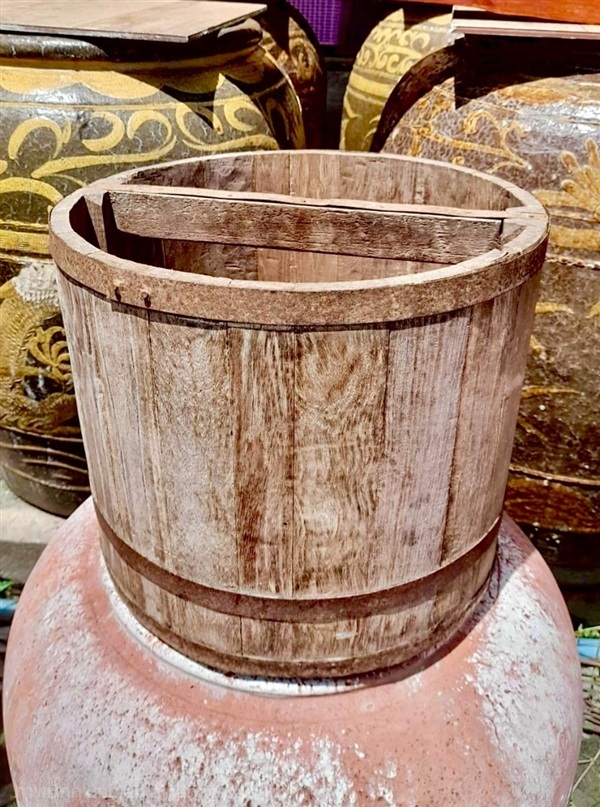 ถังไม้ตวงข้าวสาร หูจับด้านใน ถังตวงข้าวโบราณ