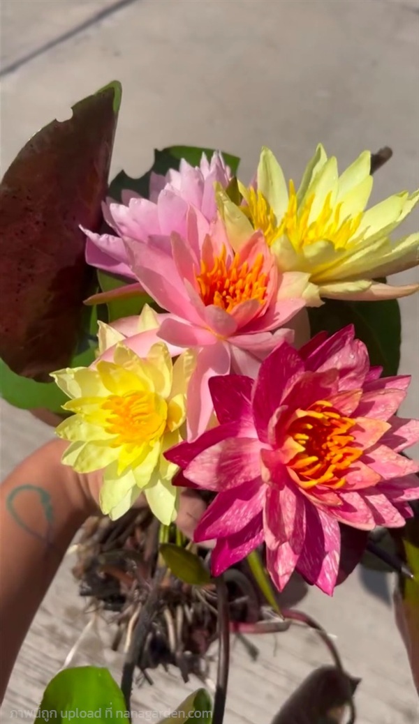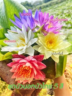 ชุดบัวคละสี 5 สี 5 สายพันธุ์ บัวนอก บัวไทย เหลืองโจอี้ แสดวันวิสาข์ ชมพูพลอยแดง ขาวมงคล ม่วงจีน่า