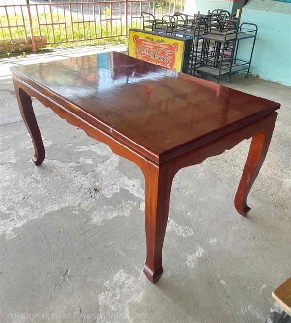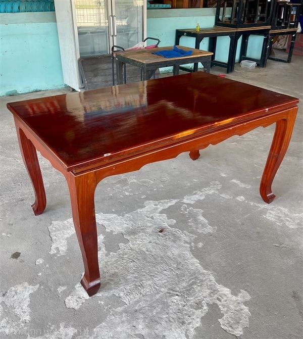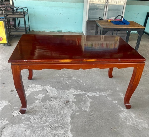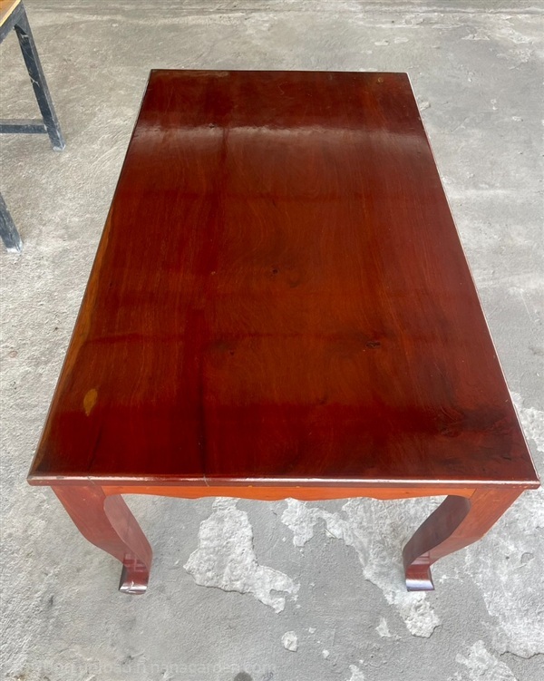 ทำจากไม้ประดู่แผ่นเดียว (หนักหลายกิโล) สีแดงสดสวยมันเงา สำหรับเก็บสะสมใช้งาน เป็นโต๊ะรับรอง โต๊ะทำงาน ทานอาหาร